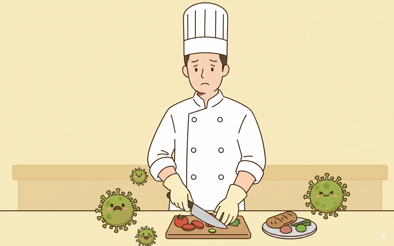 これは、調理担当者がノロウイルスに感染しており、その手指を介して様々な食品が汚染されてしまうケースです。サラダ、パン、和え物など、加熱しない食品はもちろん、加熱後の食品を盛り付ける際に触れることでも汚染は広がります。