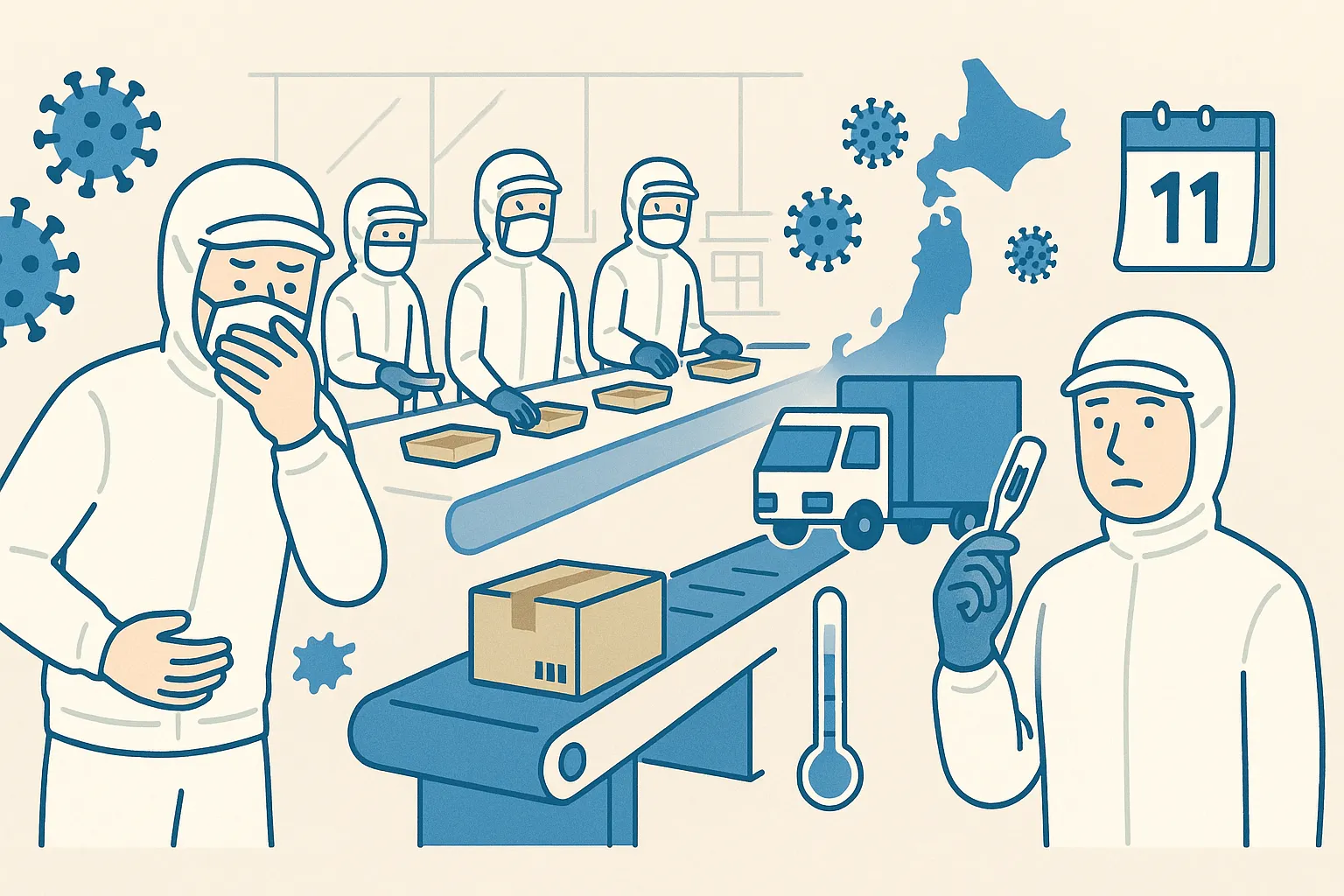 感染者が工場に入れば、製造ラインを通じて全国に商品が流通し、数百人・数千人規模の食中毒事故につながるリスクがあります。