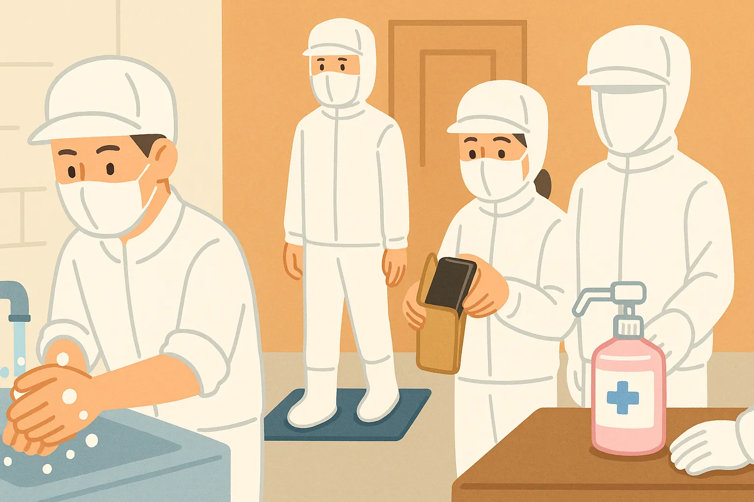 食品工場で最も恐れられるのがノロウイルスの持ち込みと拡散。本記事では、従業員の健康管理や入場ルールの再点検ポイントを、実例やクイズを交えつつわかりやすく解説。工場責任者・品質管理担当者必読の完全マニュアルです。