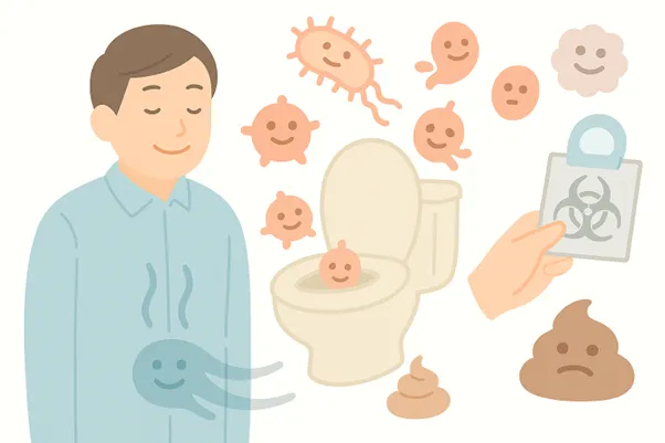 本人は元気。だからこそ出勤する。しかし菌はそこにいる。これが“隠れ感染者”問題であり、検便検査が必要な理由です。